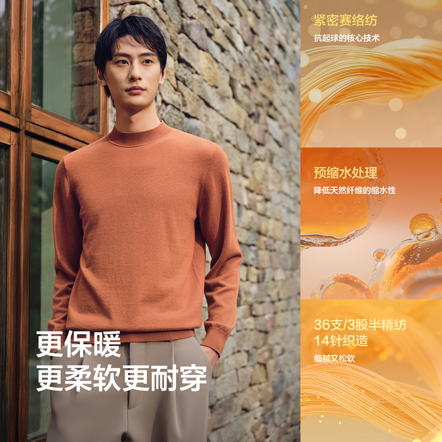 天猫【可机洗羊毛衫】红豆男装全羊毛25冬季重磅青中年打底针织衫毛衣