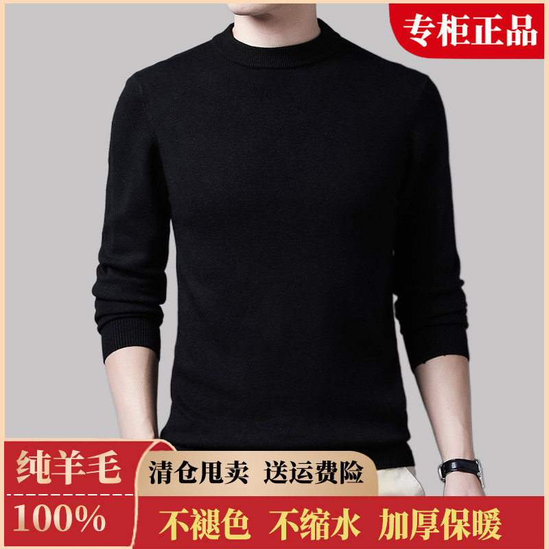 淘宝鄂尔多斯市半高领100%纯羊毛衫男士保暖纯色毛衣针织羊绒打底衫