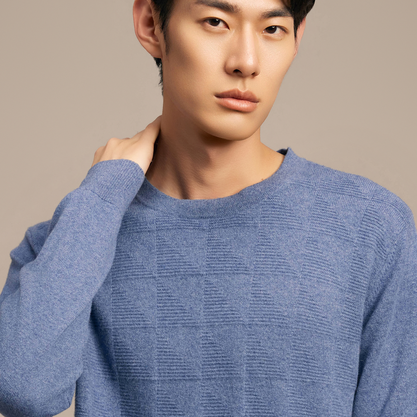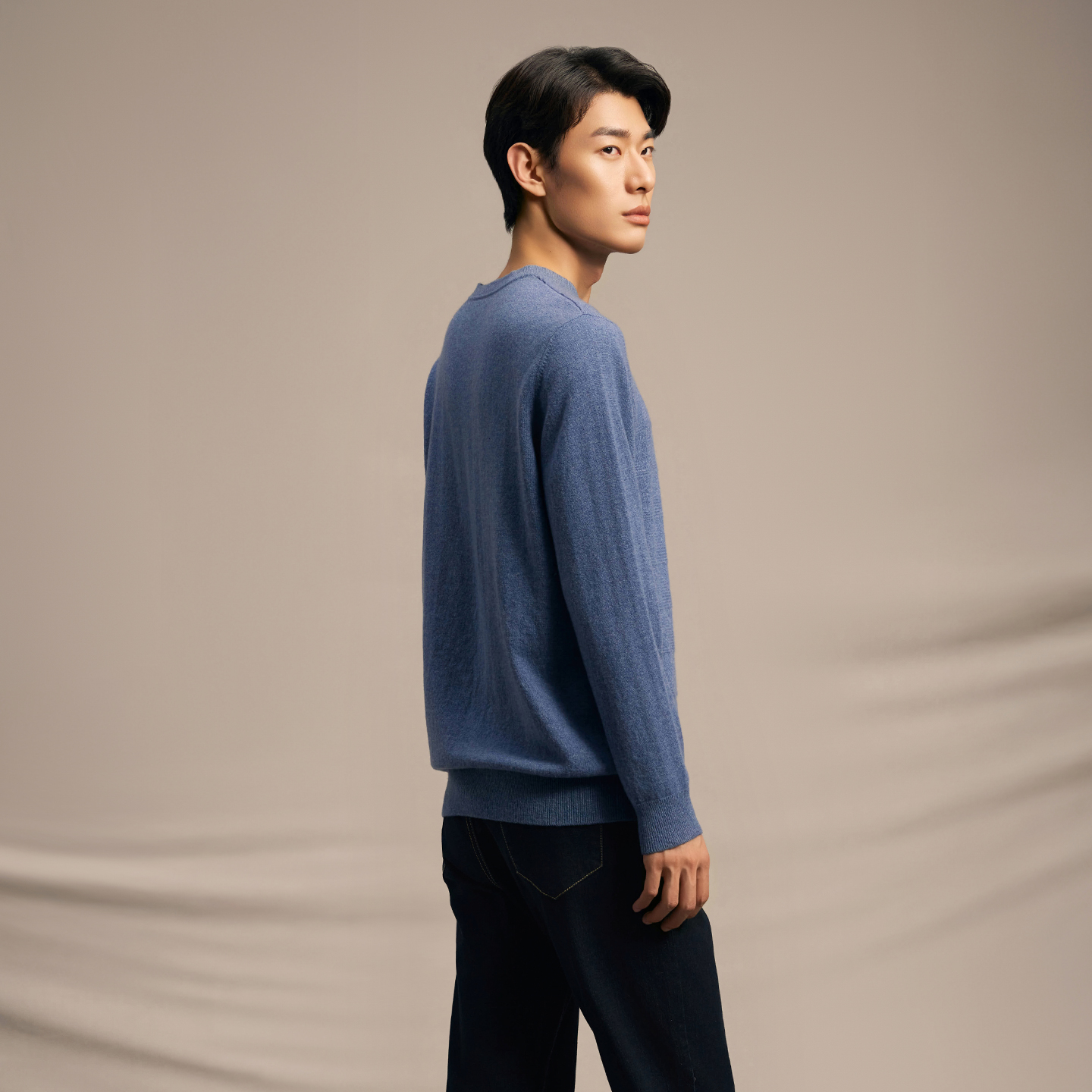 圆领超厚100纯山羊绒衫男士长袖套头纯色时尚百搭针织衫e家KVSS纱