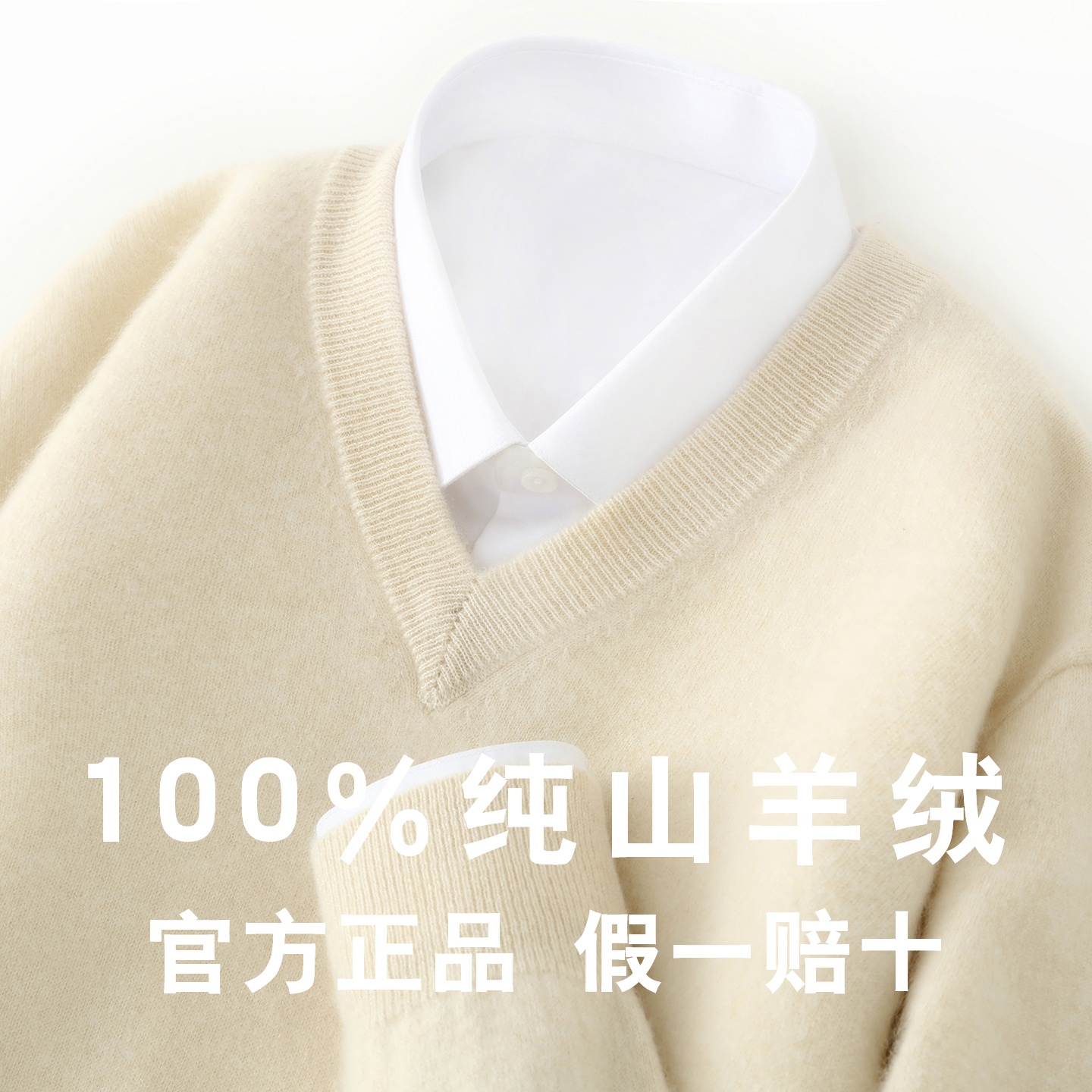 淘宝秋冬新款100%纯山羊绒衫男V领宽松针织衫男款鸡心领保暖打底毛衣