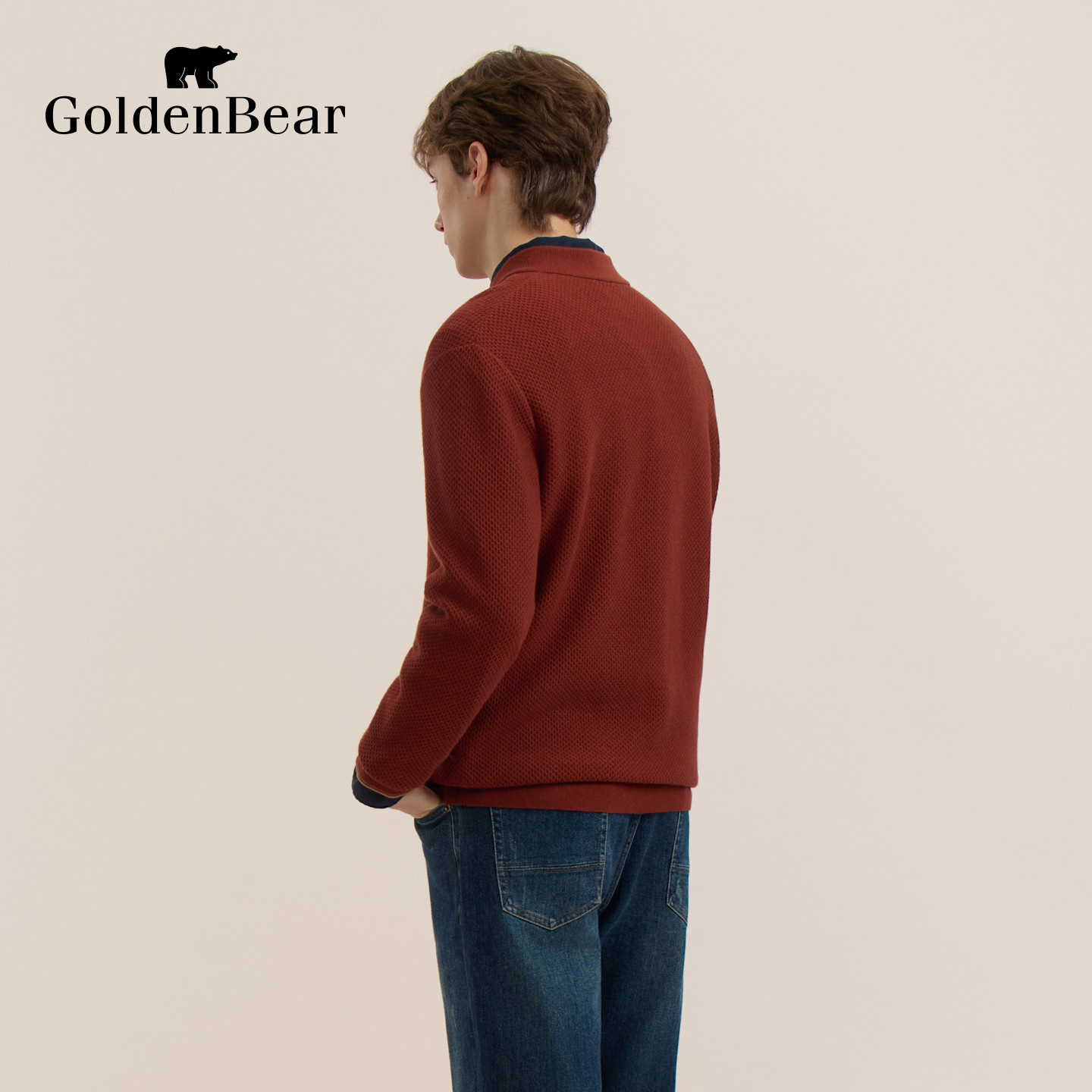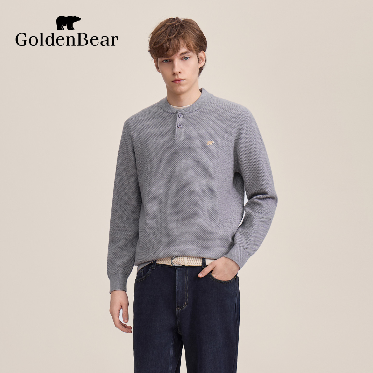 天猫GOLDEN BEAR/金熊 春季男装厚款亨利领针织衫