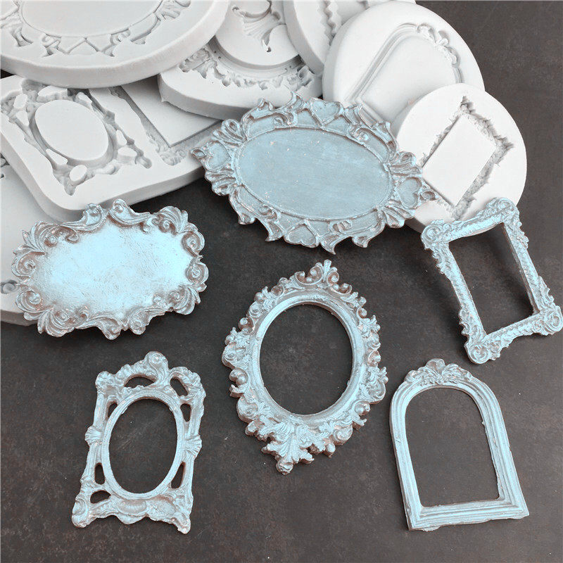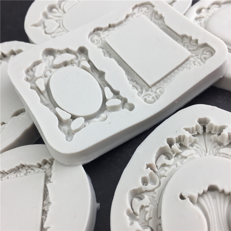 淘宝翻糖干佩斯硅胶模复古欧式镜框模相框宝石浮雕边框蛋糕装饰巧克力