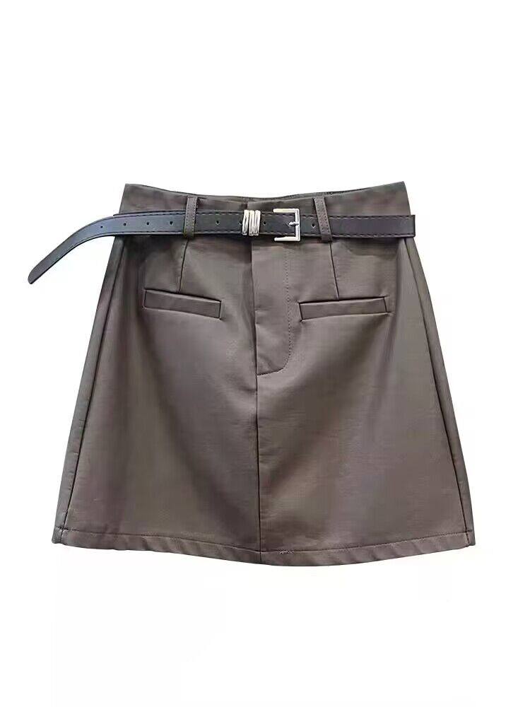 淘因由 奢牌秀场都市静奢风复古高腰开叉雾感环保皮柔飒一体半身裙