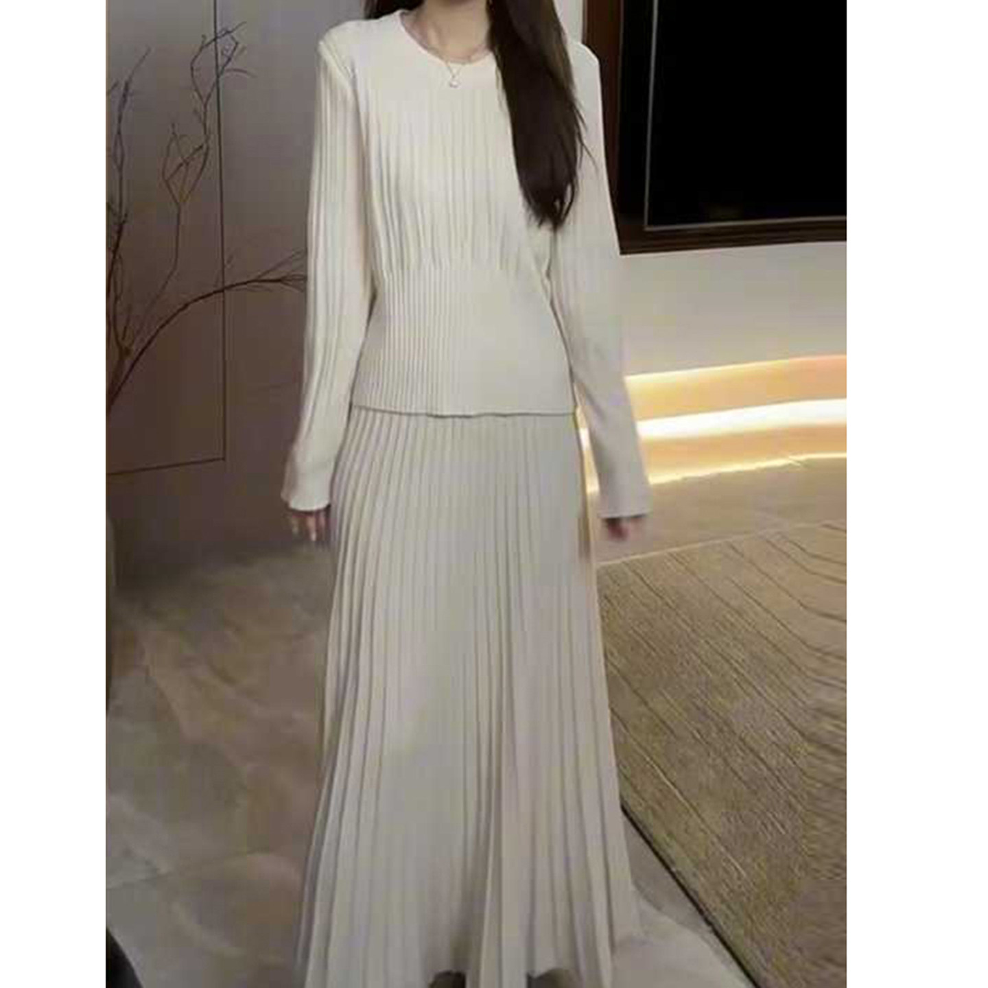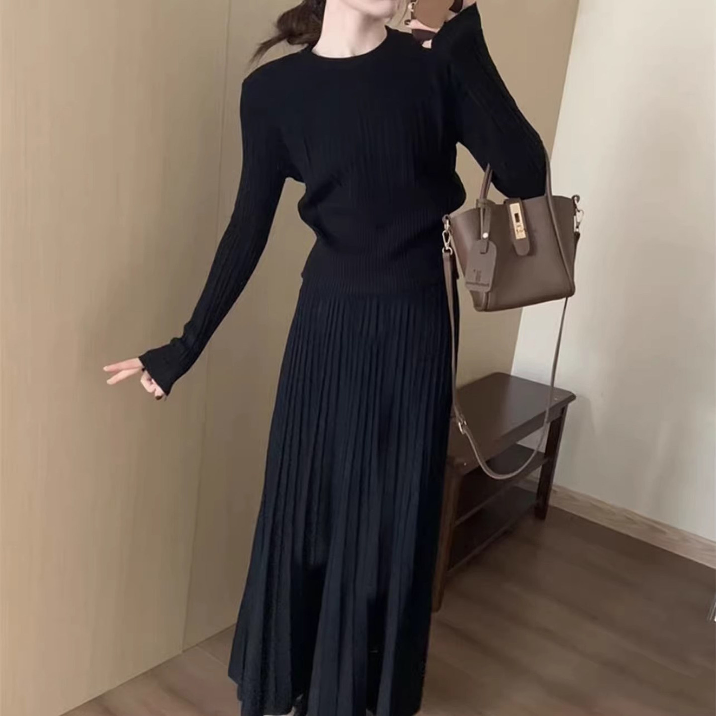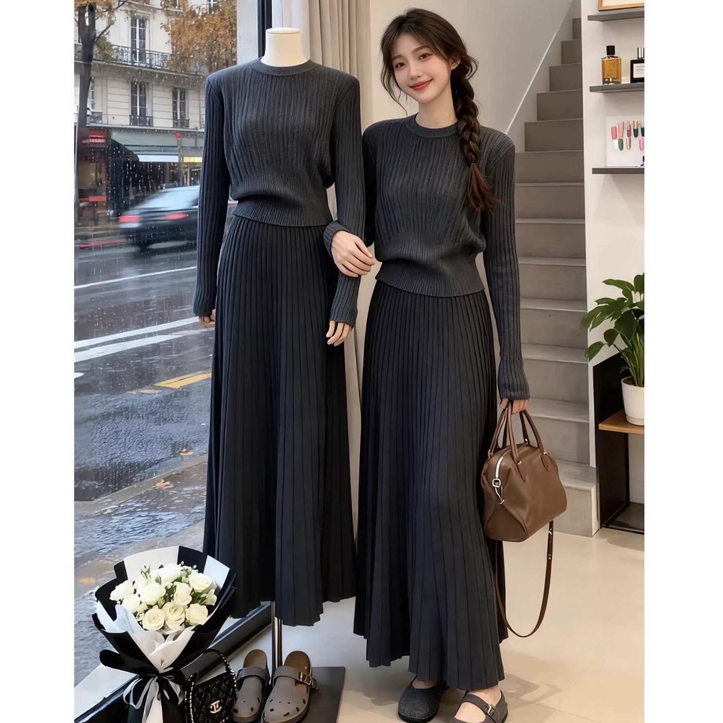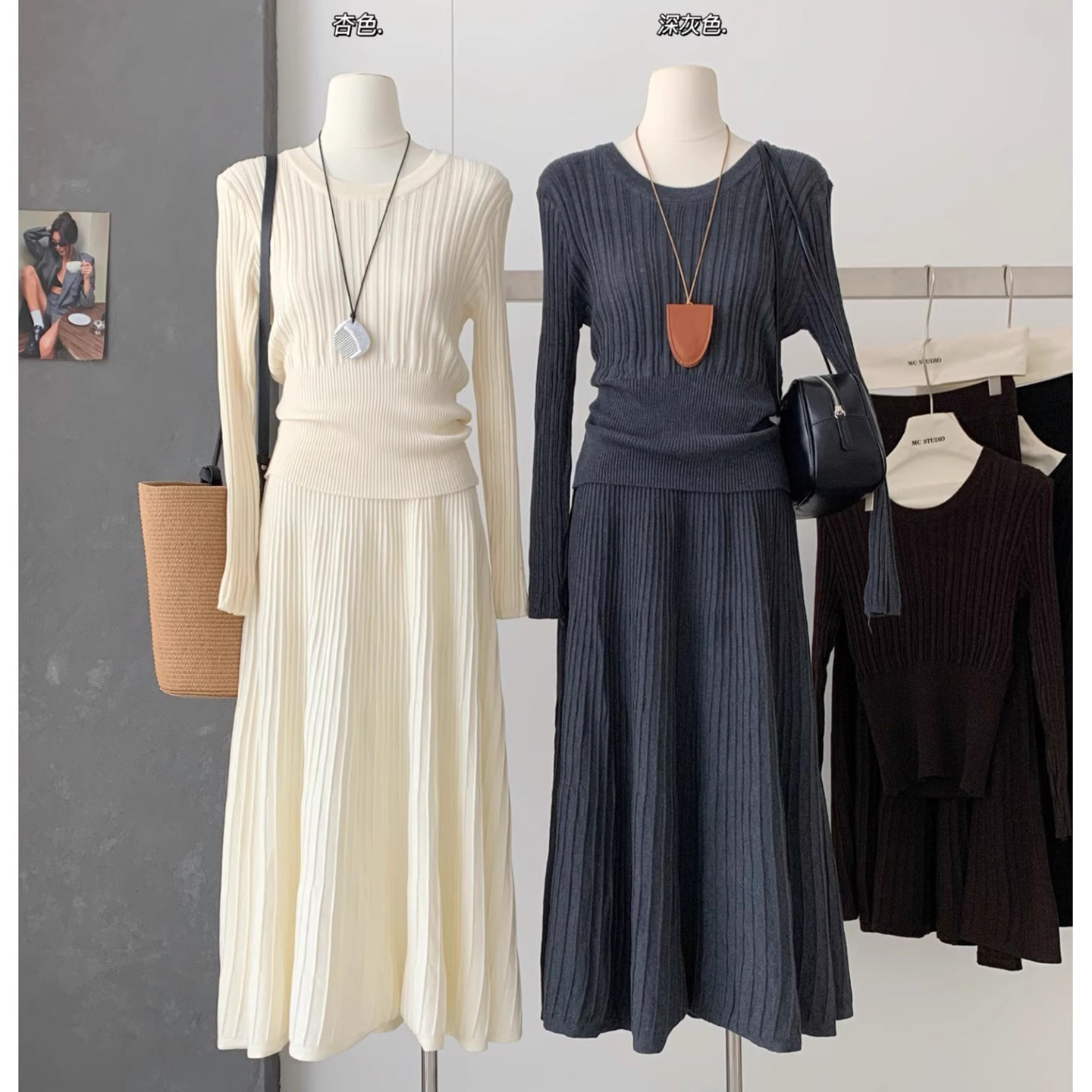 淘宝法式高级感针织长裙秋冬收腰显瘦两件套气质短款毛衣半身伞裙套装