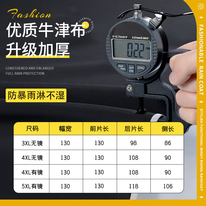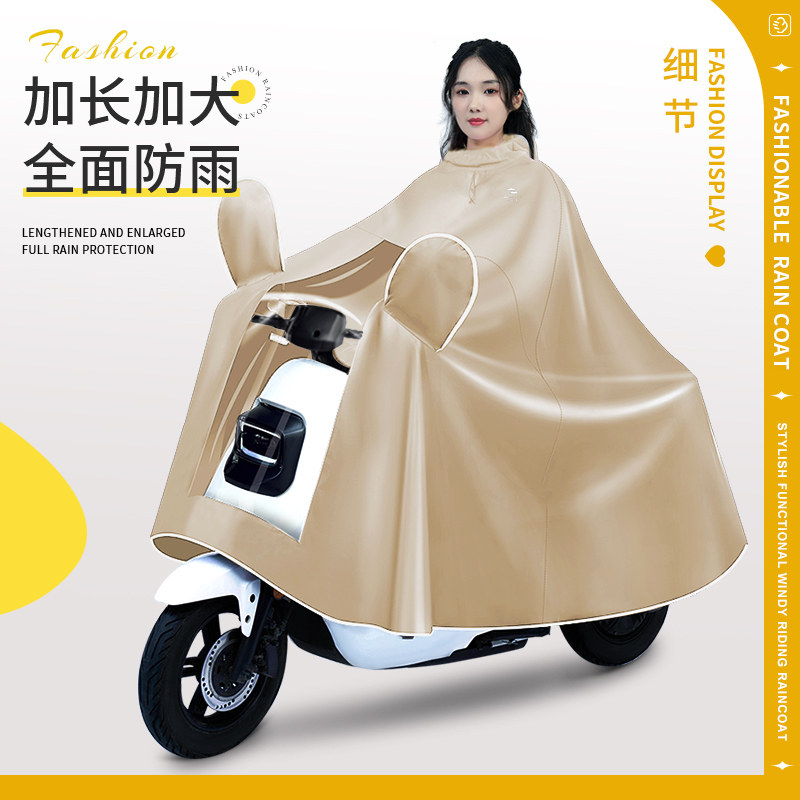 这款专为电动车、摩托车及电瓶车设计的长款全身防暴雨雨披,采用加厚高密度PVC材质,具备出色的防水、防风性能,有效抵御暴雨侵袭。男女通用设计,女款剪裁更贴合身形,穿着舒适不臃肿。加长版型覆盖全身及腿部,保护骑行者和车辆仪表盘免受雨水侵扰。反光条设计提升夜间骑行安全性,帽檐加高防雨水流入面部,袖口与下摆密封严密,防止渗水。轻便易折叠,便于携带存放。适用于多种电动车型号,是雨季出行的理想防护装备,兼顾实用性与安全性,让骑行风雨无阻。