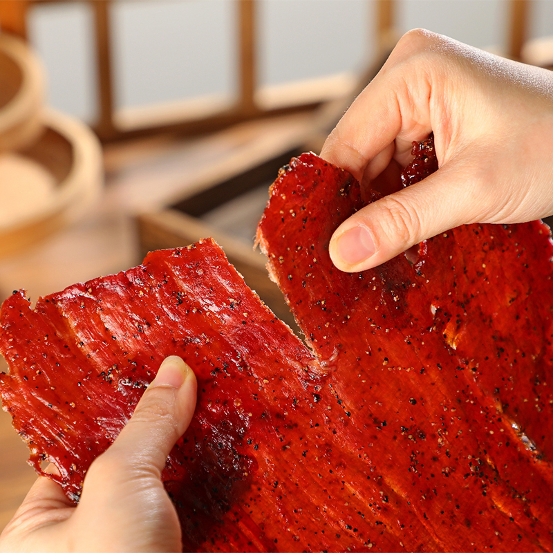 淘宝裕杨猪肉脯500g袋装原切后腿肉脯大片手撕黑椒原味猪肉干解馋零食