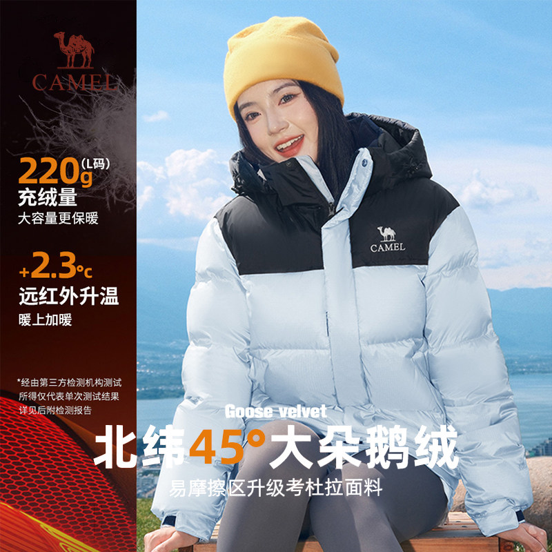 天猫【迪丽热巴同款】骆驼火山PRO鹅绒羽绒服女装冬加厚连帽羽绒外套