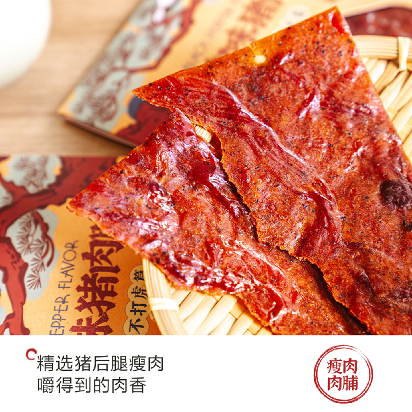 茶颜悦色茶颜家族推出的黑椒味猪肉脯,是办公室下午茶和追剧必备休闲零食。这款肉脯采用优质猪肉制作,经过精细加工和黑椒调味,口感鲜美、香辣可口。适合在忙碌的工作间隙或闲暇时光,搭配一杯清茶或咖啡,享受惬意时光。无论是办公室还是家庭,都是不可多得的美味佳品。这款猪肉脯采用独立包装,方便携带和储存,让你随时随地都能品尝到美味。