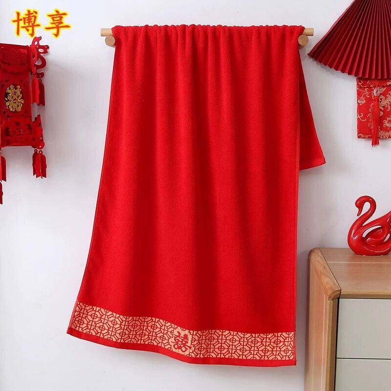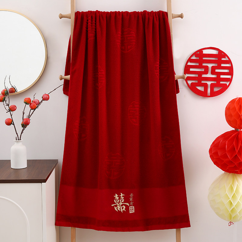 淘宝大红结婚庆浴巾毛巾礼盒套装纯棉婚车陪嫁情侣回礼礼品喜字