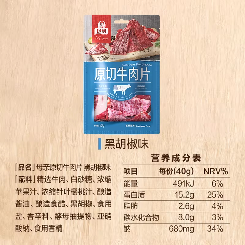 天猫母亲原切牛肉片黑胡椒味40g零食解馋小吃肉脯美食休闲食品特产