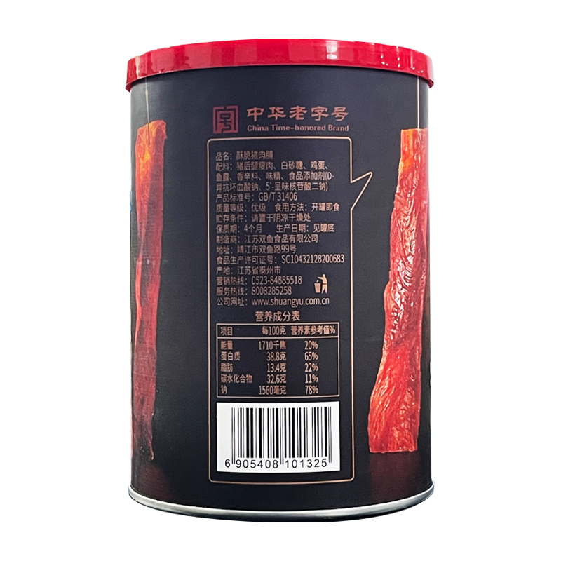 天猫正宗双鱼猪肉脯酥脆118g*2罐装靖江特产猪肉铺脆肉脯散装碎片零食