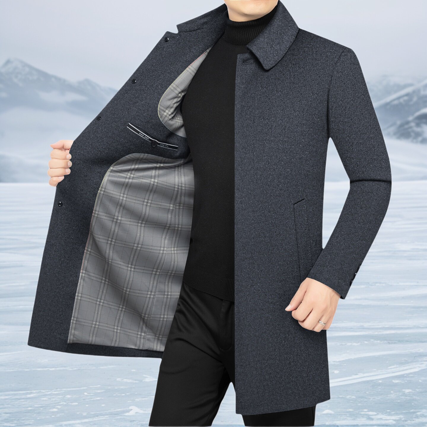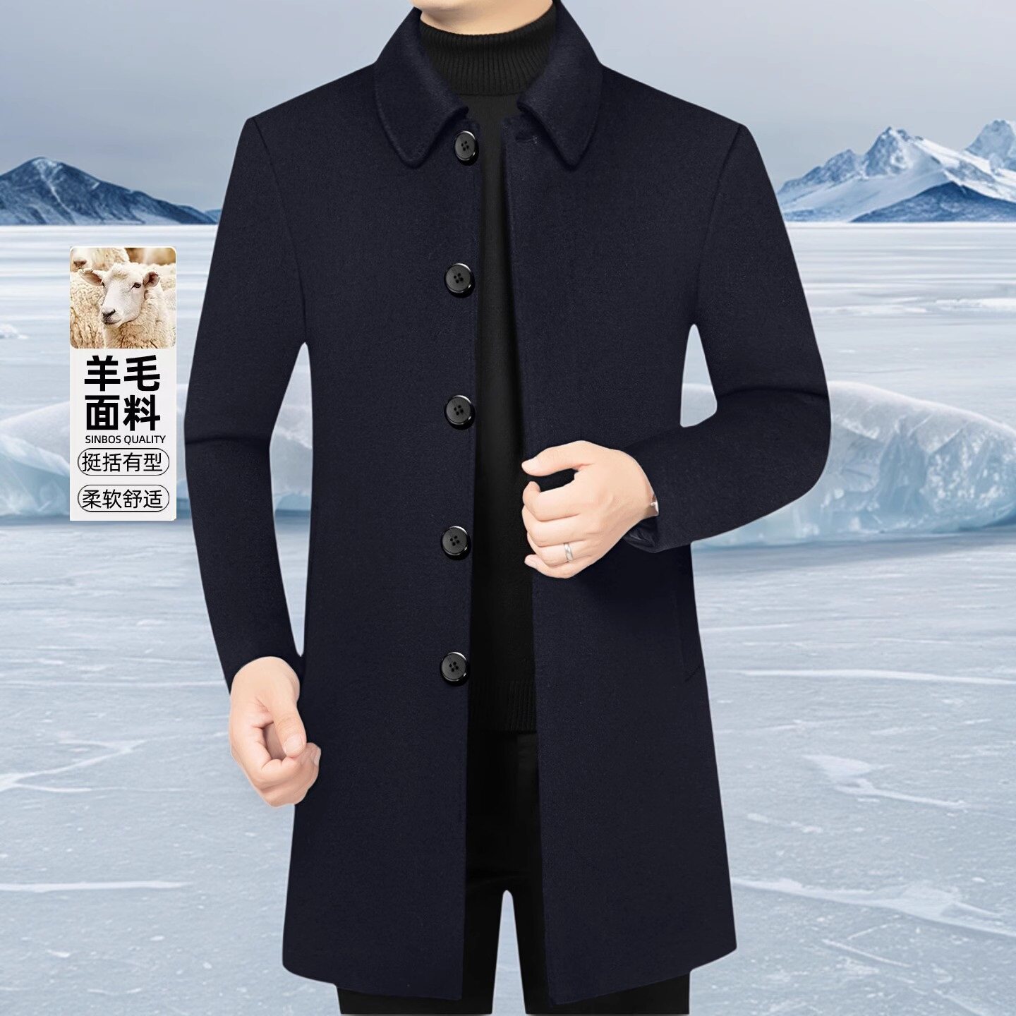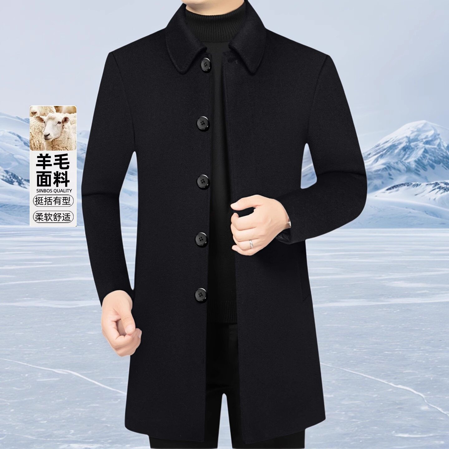 淘宝羊毛呢大衣男外套中长款秋冬中年商务休闲中厚保暖呢子风衣爸爸装