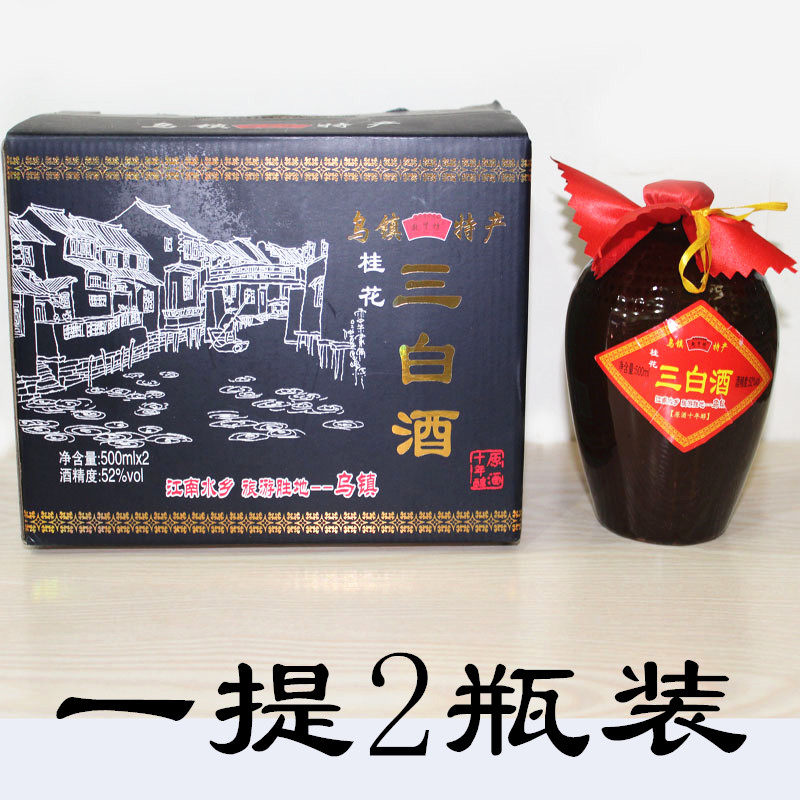 淘宝乌镇三白酒特产敬贤坊桂花三白酒52度十年陈 500ml*2瓶礼盒装包邮