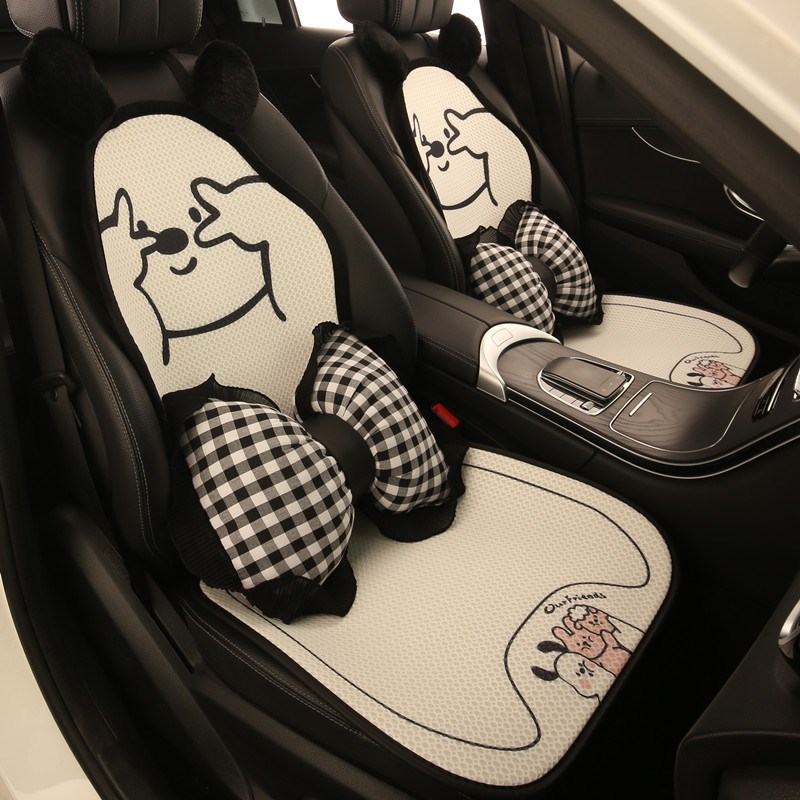 天冬季汽车坐垫毛绒网红女神可爱卡通小熊座垫半包小蛮腰车内车垫