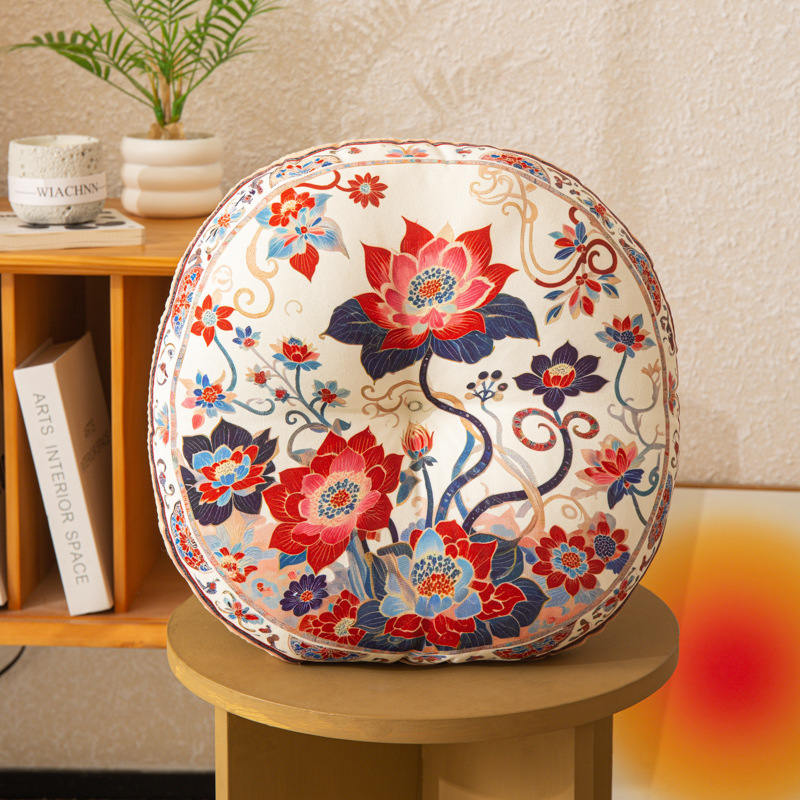 淘宝棉麻圆形坐垫防滑垫子椅子复古家用创意加厚民族风垫子地垫加厚软
