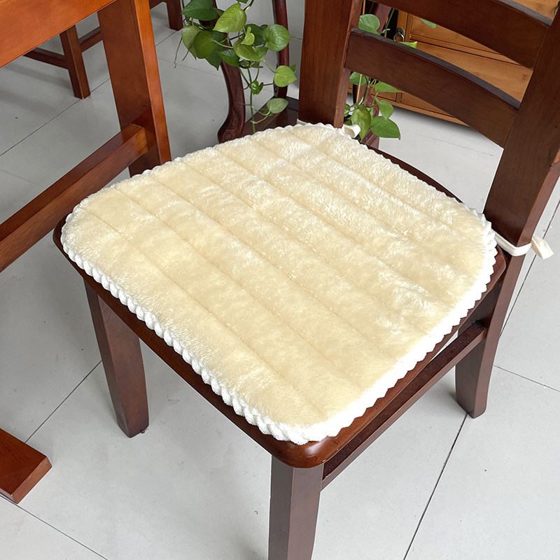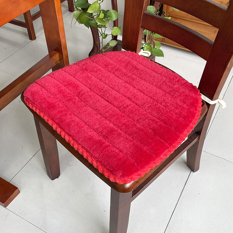 方形毛绒椅子垫冬季保暖防滑坐垫椅垫家用餐椅垫带绑带办公椅凳子