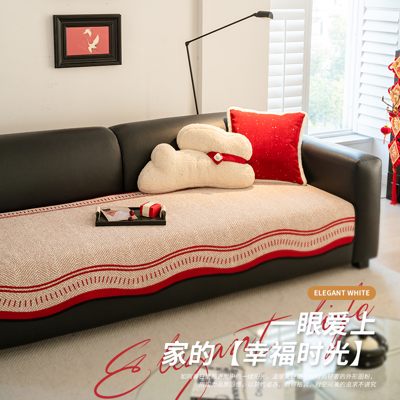 天猫雪尼尔红色喜庆沙发垫高级感异形沙发盖布2025新款直排皮沙发坐垫