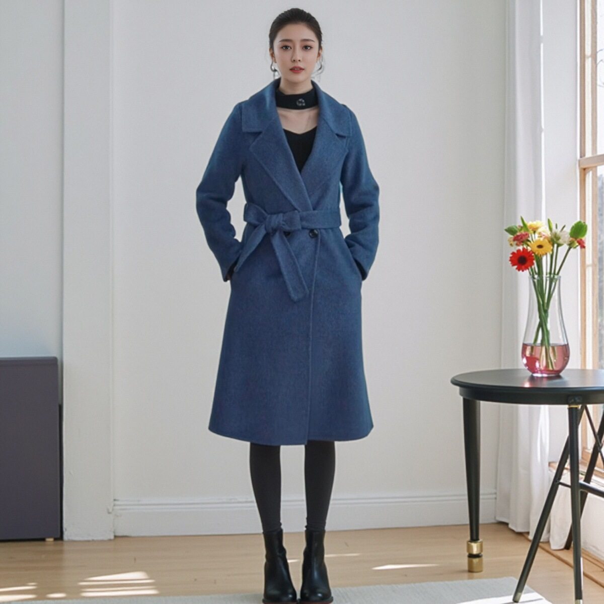 *WDY08035 茉莉雅集 H家柔软全山羊绒双面呢利落西装领中长大衣