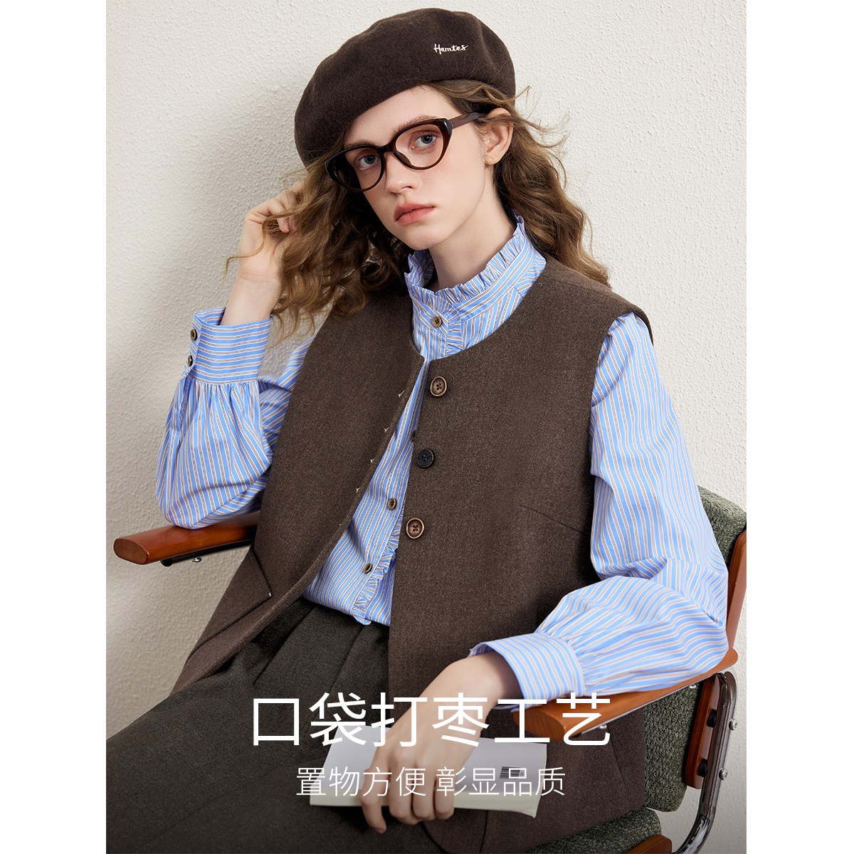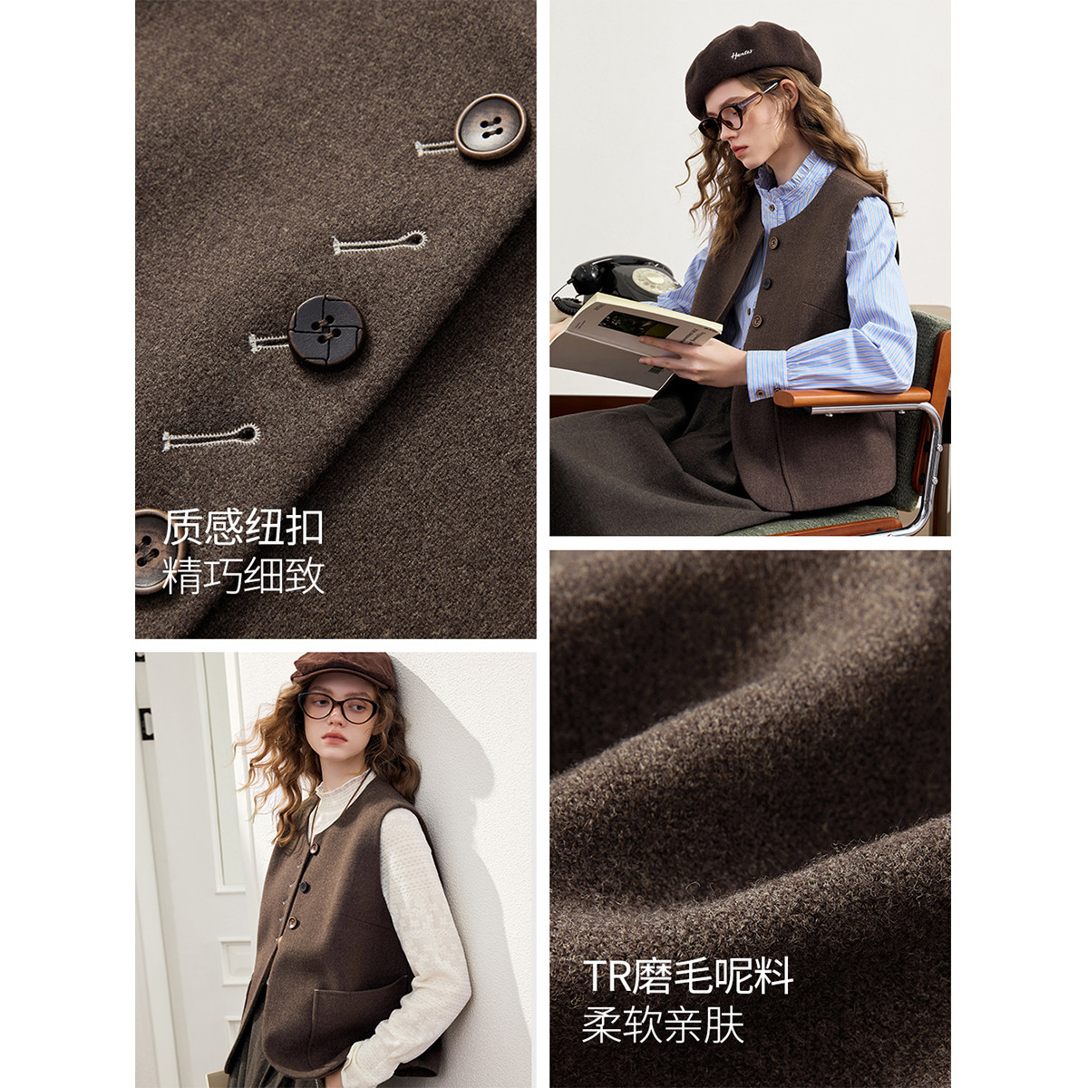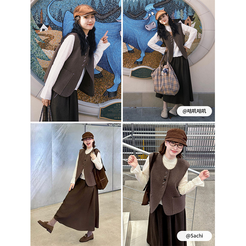 淘宝KBNE咖啡色磨毛西装马夹背心女2026春季新款叠穿保暖针织马甲上衣