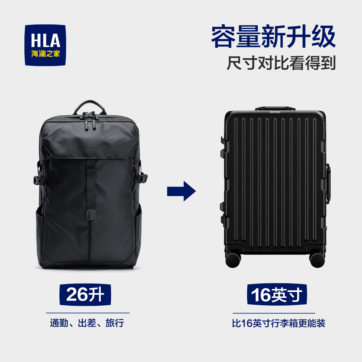 天HLA/海澜之家双肩包男士短途出差大容量旅行女电脑包学生轻便书包