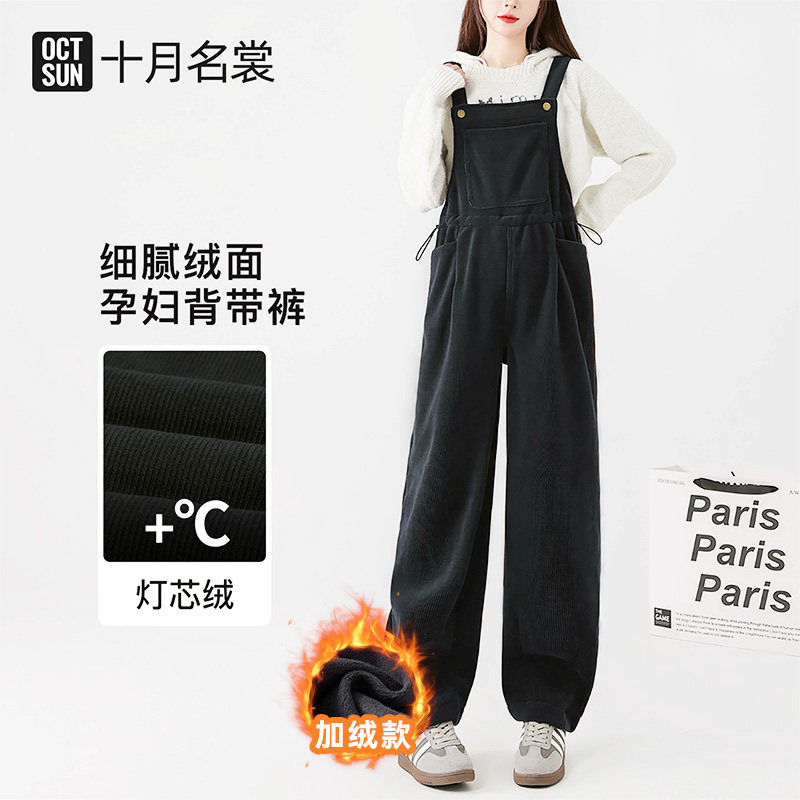 天孕之优品孕妇灯芯绒背带裤秋冬款外穿减龄宽松休闲孕妇装孕妇裤子