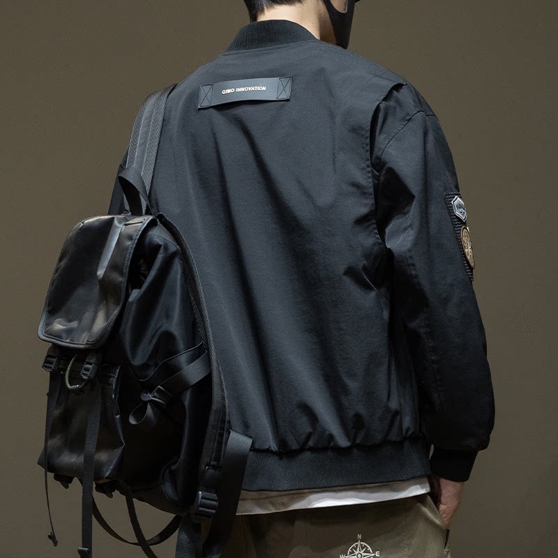 秋冬潮牌字母刺绣棒球服机能风飞行员夹克男女装情侣韩版宽松外套