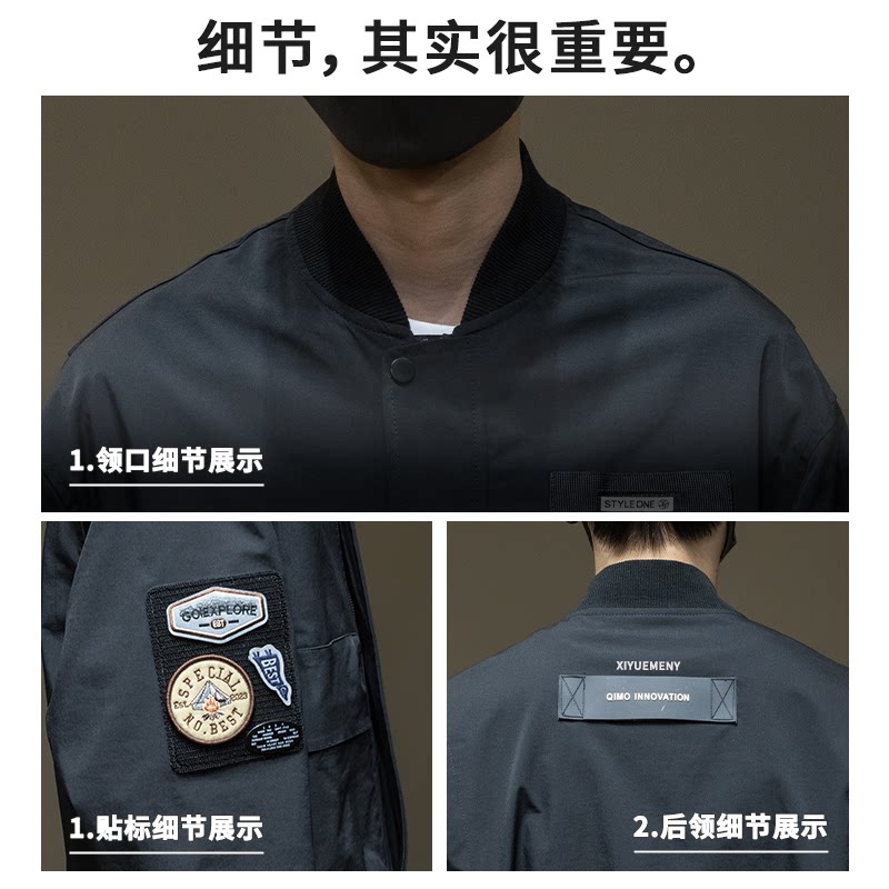 天猫希越防风棒球领夹克男士外套春季新款宽松大码工装飞行服春秋男装