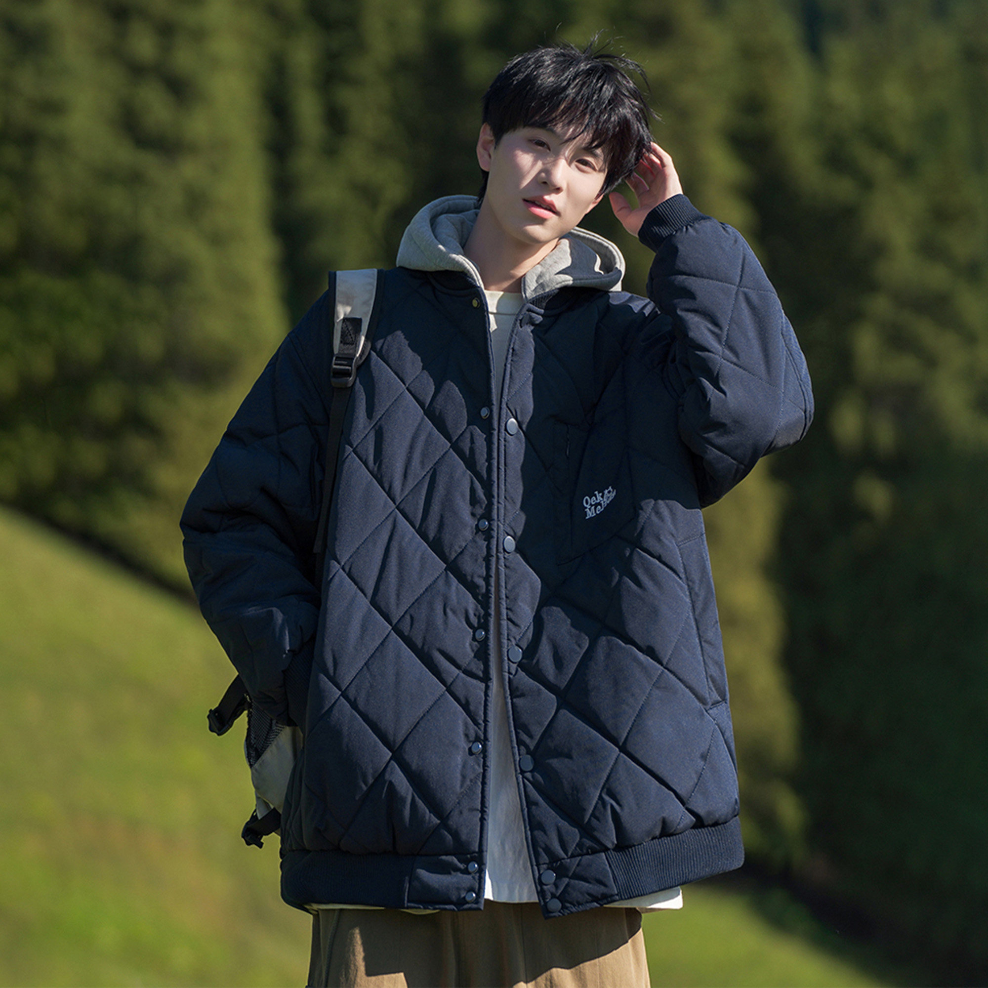 胖胖哥菱格连帽棉衣,专为冬季保暖设计,适合青少年及大码男士穿着。采用重磅加厚面料,内里填充优质棉絮,锁温保暖效果出众,轻松应对严寒天气。宽松版型剪裁,不挑身材,穿着舒适自在。经典菱格绗缝工艺,立体有型,兼顾时尚与实用。连帽设计搭配可调节抽绳,防风护颈;前襟拉链加按扣双重闭合,增强保暖性。袖口与下摆罗纹收口,贴合身形,防止冷风灌入。多口袋设计,方便置物。整体风格休闲百搭,无论是日常出行还是校园穿搭,都能展现青春活力,是冬季衣橱的必备单品。