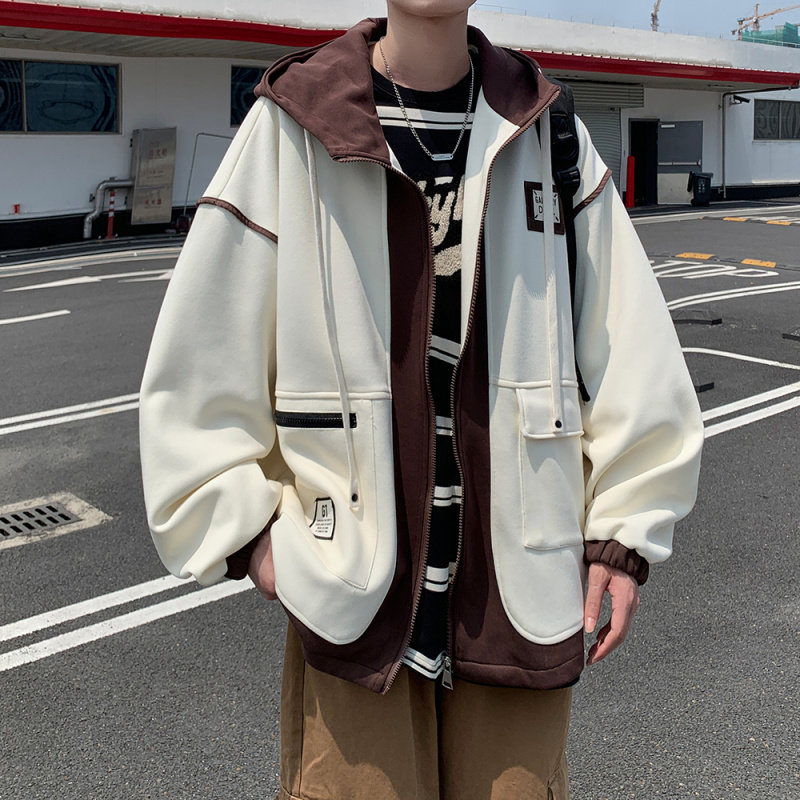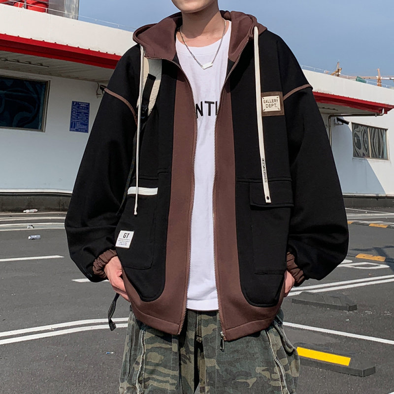 淘宝青少年假两件连帽外套男春秋季潮流宽松美式灯芯绒夹克休闲棒球服
