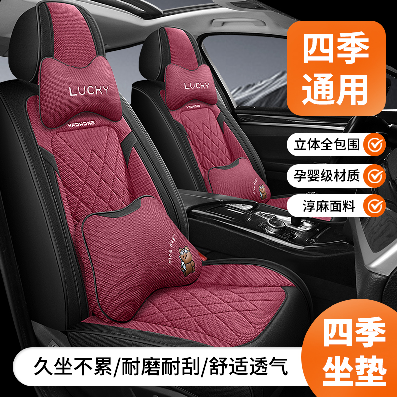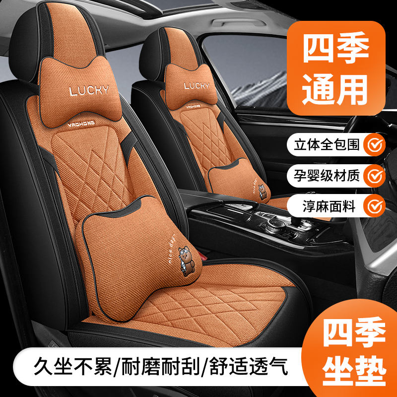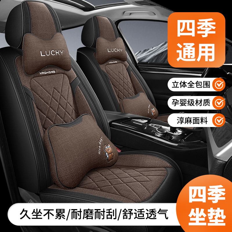淘汽车坐垫四季通用全包围车坐垫新款座套垫子棉麻透气布艺座椅座套