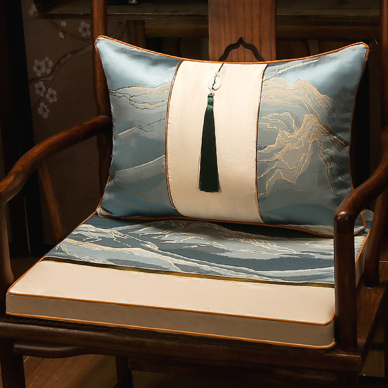 淘宝新中式红木椅垫实木沙发防滑坐垫棉麻刺绣古典餐椅圈椅官帽椅座垫