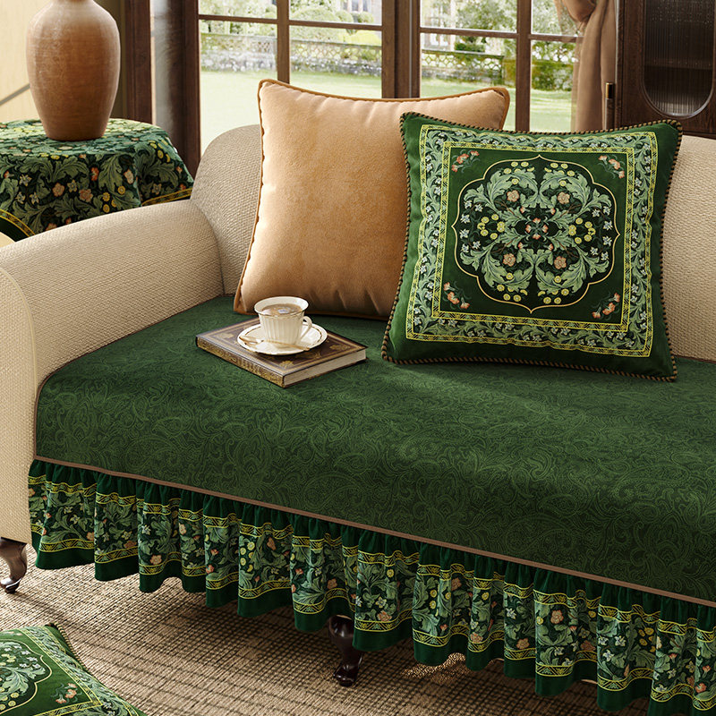 天猫范居态度绿芜绿色美式四季通用沙发垫冬季毛绒防滑坐垫沙发盖布