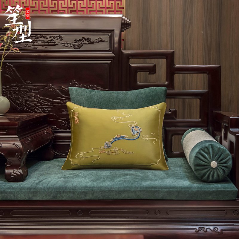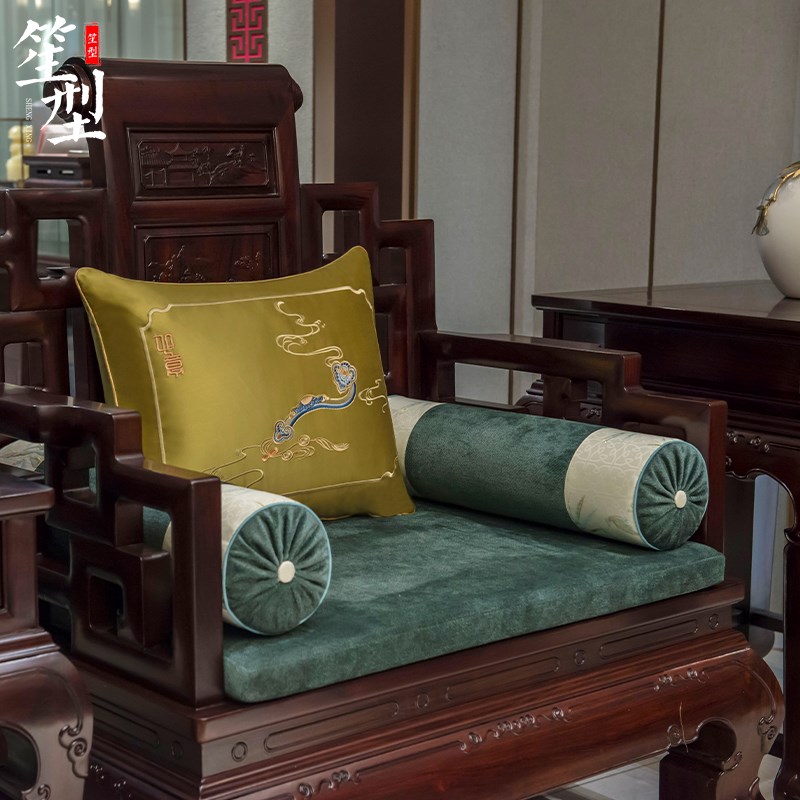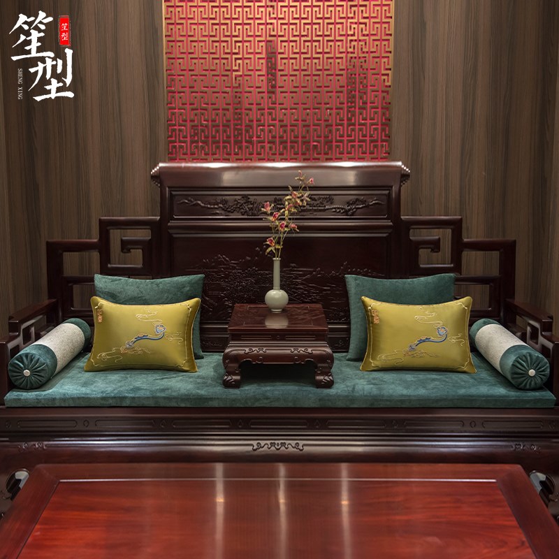 淘宝中式红木沙发坐垫子古典罗汉床座垫五件雪尼尔靠垫刺绣腰枕定制