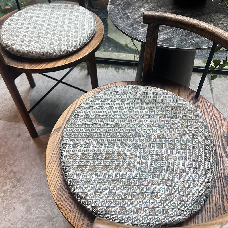 淘高端绒布刺绣茶椅垫法式中古风实木餐椅坐垫防滑软垫子加厚屁垫