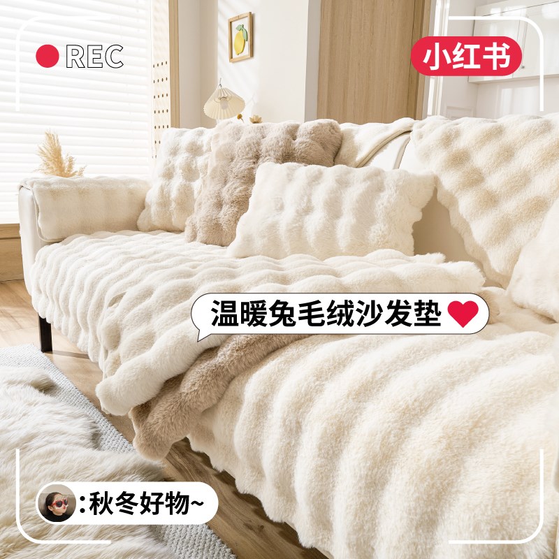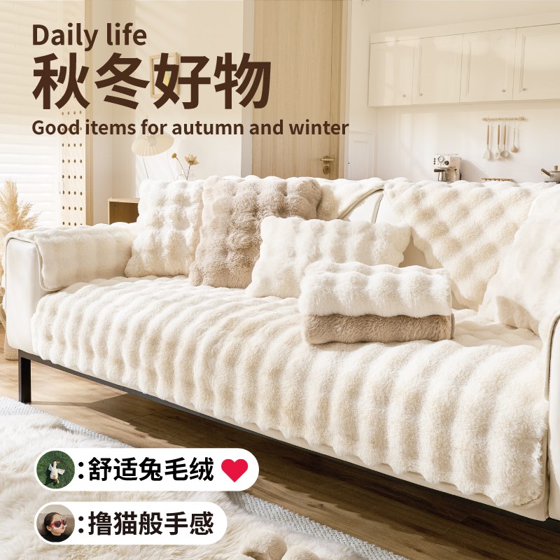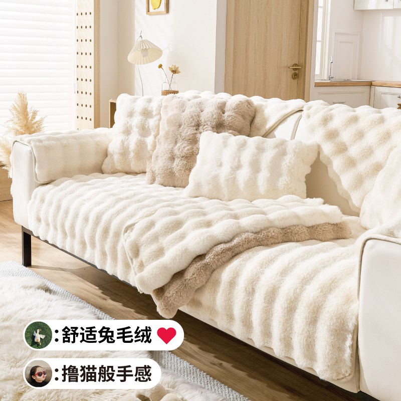 淘冬季毛绒沙发垫法兰绒布艺欧式加厚坐垫四季防滑皮沙发巾罩
