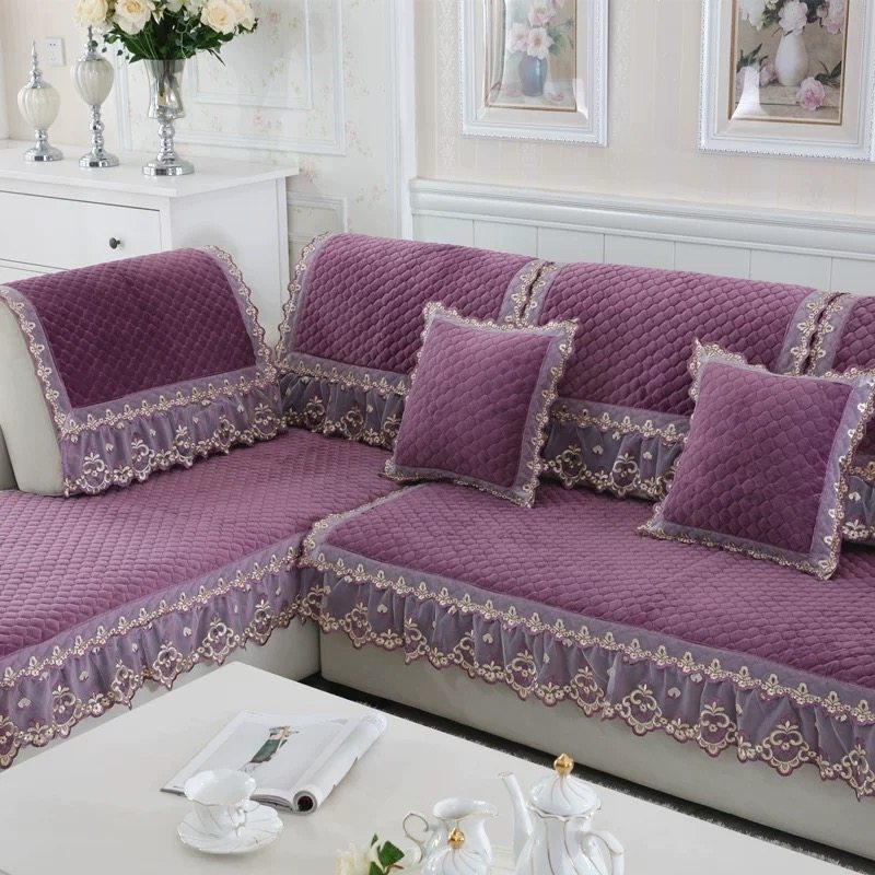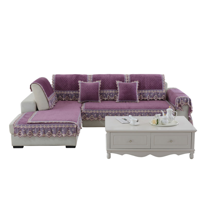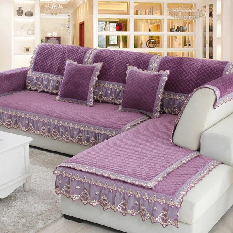 淘宝沙发垫四季通用防滑高级感坐垫加厚毛绒冬季紫色全包沙发套罩盖布