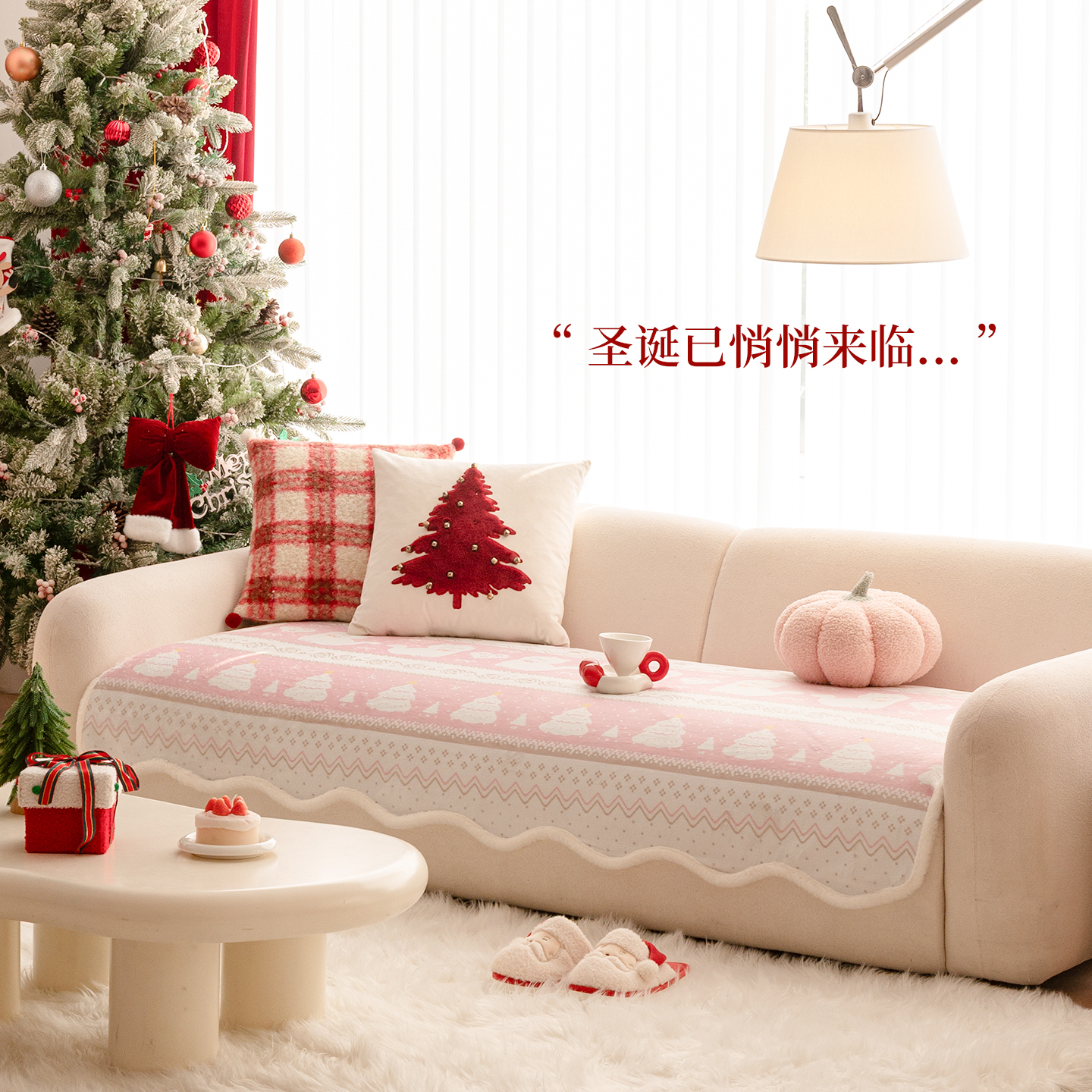 天猫圣诞异形沙发垫冬2025新款加厚毛绒皮沙发盖布固定防滑沙发坐垫子