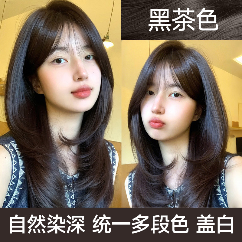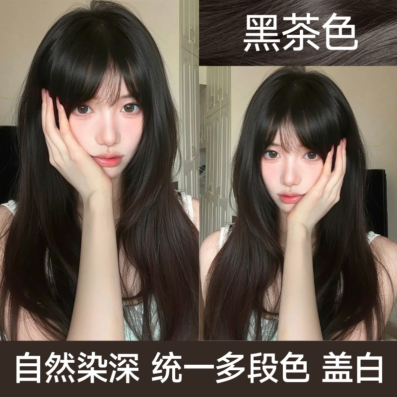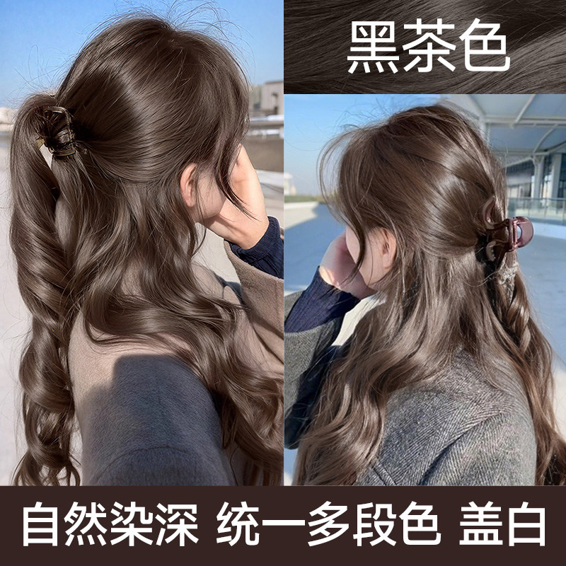 天猫忆丝芸黑茶色染发膏冷棕色植物染发剂栗灰泡泡纯在家盖白发正品女