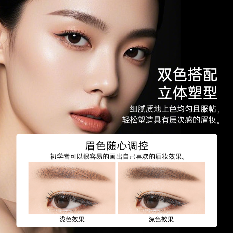 天猫深蓝黑魅双色眉粉盘女自然不易脱色持久灰色棕色初学者新手眉笔刷