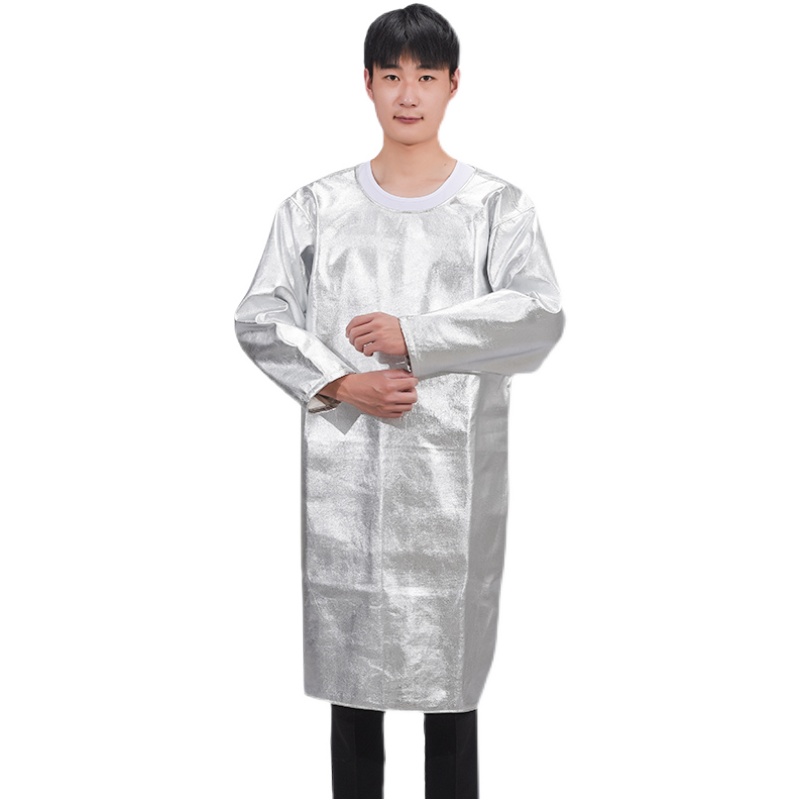 商品介绍:这款优选铝箔耐高温反穿衣大褂是一款卓越的隔热阻燃防护服。它能有效抵御高温、防火、防烫,并具备出色的防热辐射功能,可承受高达1000度的高温。这款防护服采用高质量铝箔材料制成,具备卓越的耐高温性能,为您的工作安全提供全方位保护。无论是热工业场所还是高温环境下的工作,这款大褂都是您不可或缺的防护装备。