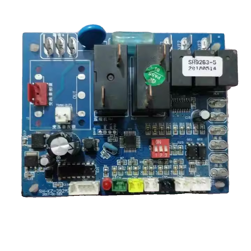 SH—KZ—392A2空气能控制板(型号SH9263—5)是专为空气能热水器设计的高性能电路板,具备智能温控、高效节能与多重安全保护功能。该线路板采用先进微处理器技术,精准调控压缩机、风机及四通阀等核心部件运行,实现制热效率最大化。支持多种工作模式切换,具备防冻、过压、过流及高温自动保护机制,确保设备稳定可靠。其模块化设计便于安装与维护,兼容性强,广泛应用于家用及商用空气能热水系统。通过优化算法提升能效比,降低运行噪音,延长设备寿命,是现代化绿色热水解决方案的关键控制单元。