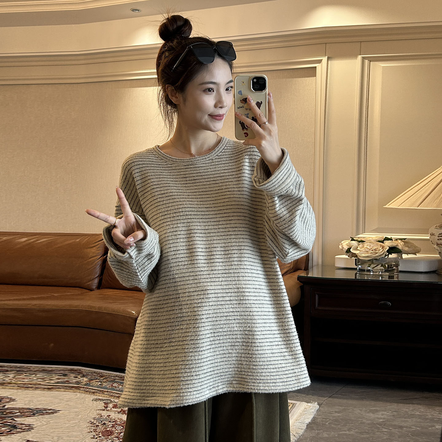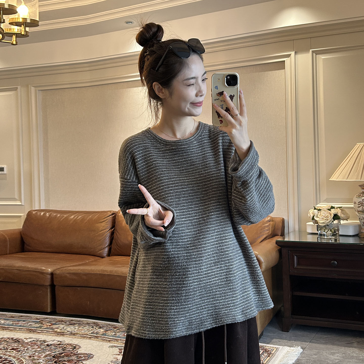 淘宝◆诺初◆海盐奥利奥~孕妇针织条纹长袖T恤秋冬宽松百搭上衣打底衫