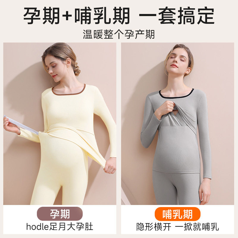 淘孕妇秋衣秋裤套装女产后哺乳德绒保暖内衣秋冬保暖大码月子家居服