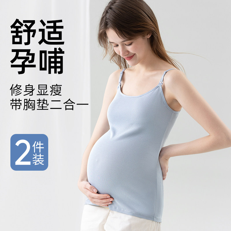 淘宝哺乳吊带背心孕妇装春夏季薄款月子服产后打底衫内搭喂奶免穿文胸