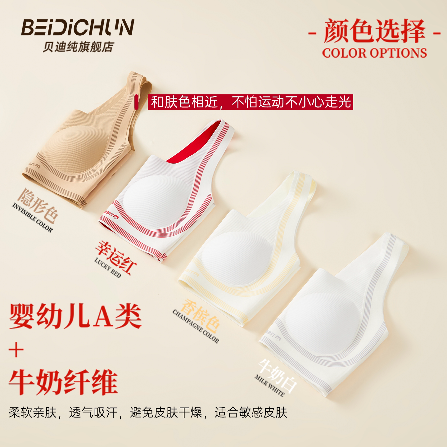 天猫贝迪纯少女内衣发育期初高中生文胸青少年无痕无钢圈防震女大童