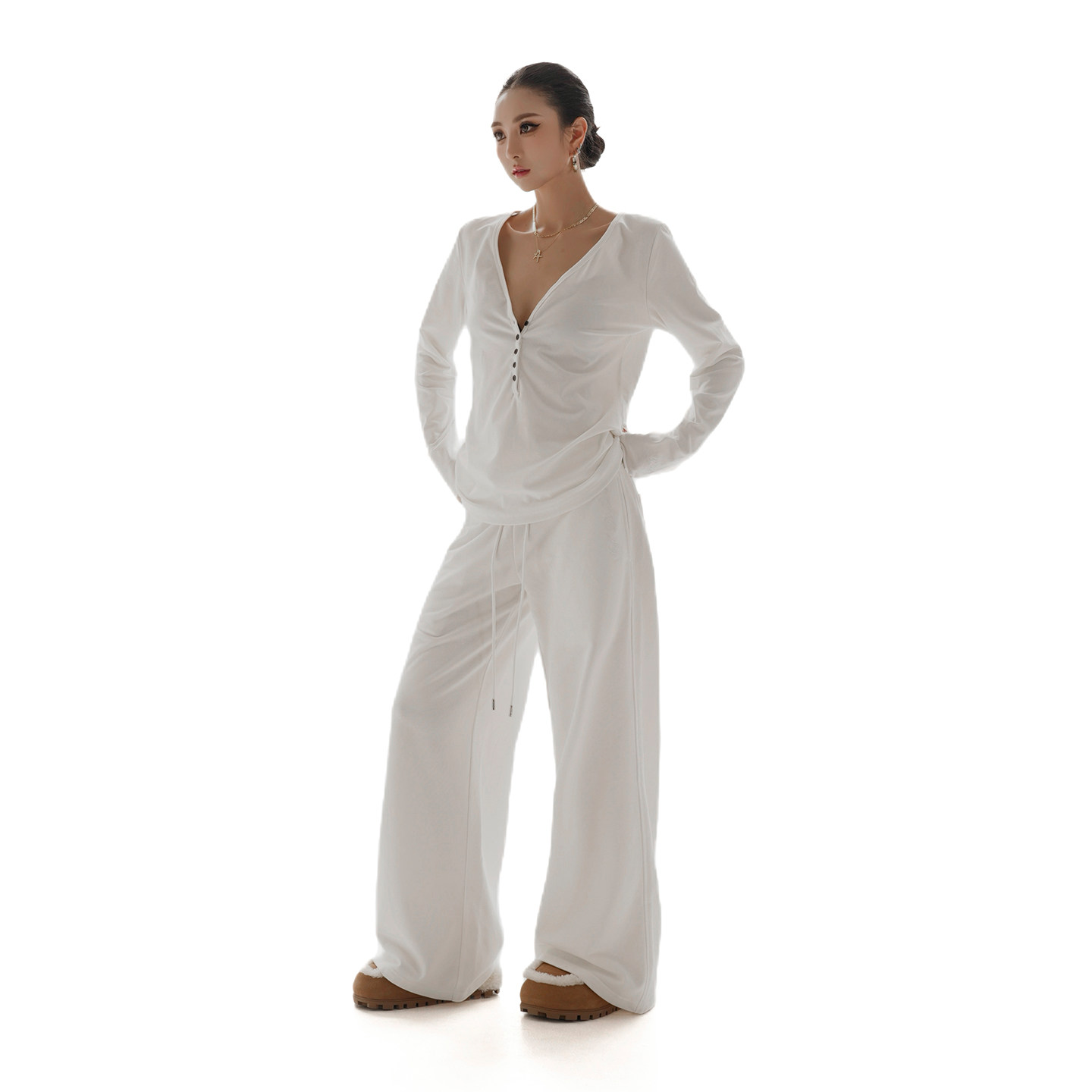 OOTC老钱风休闲简约气质女装卫裤,2025秋冬新款直筒长裤,以低调奢华的“老钱风”为核心理念,融合极简设计与高级质感。精选垂顺亲肤面料,剪裁利落,直筒版型修饰腿型,兼顾舒适与优雅。细节处考究,如隐藏式抽绳、简约侧缝线与精致走线,彰显品质感。色调以燕麦色、深灰、炭黑等中性高级色为主,百搭易穿,轻松驾驭日常通勤、休闲出行等多种场合。OOTC致力于将经典与潮流平衡,为现代女性打造不费力的高级感穿搭,是秋冬衣橱中不可或缺的质感单品。