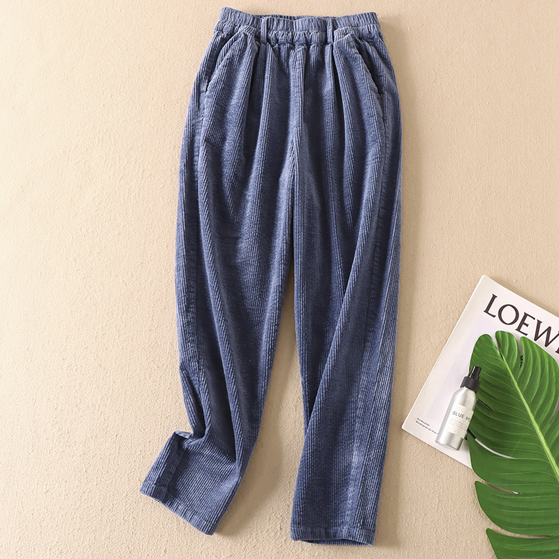 淘宝2023春新款显瘦百搭细腻灯芯绒休闲裤女高腰宽松哈伦长裤子WA3296