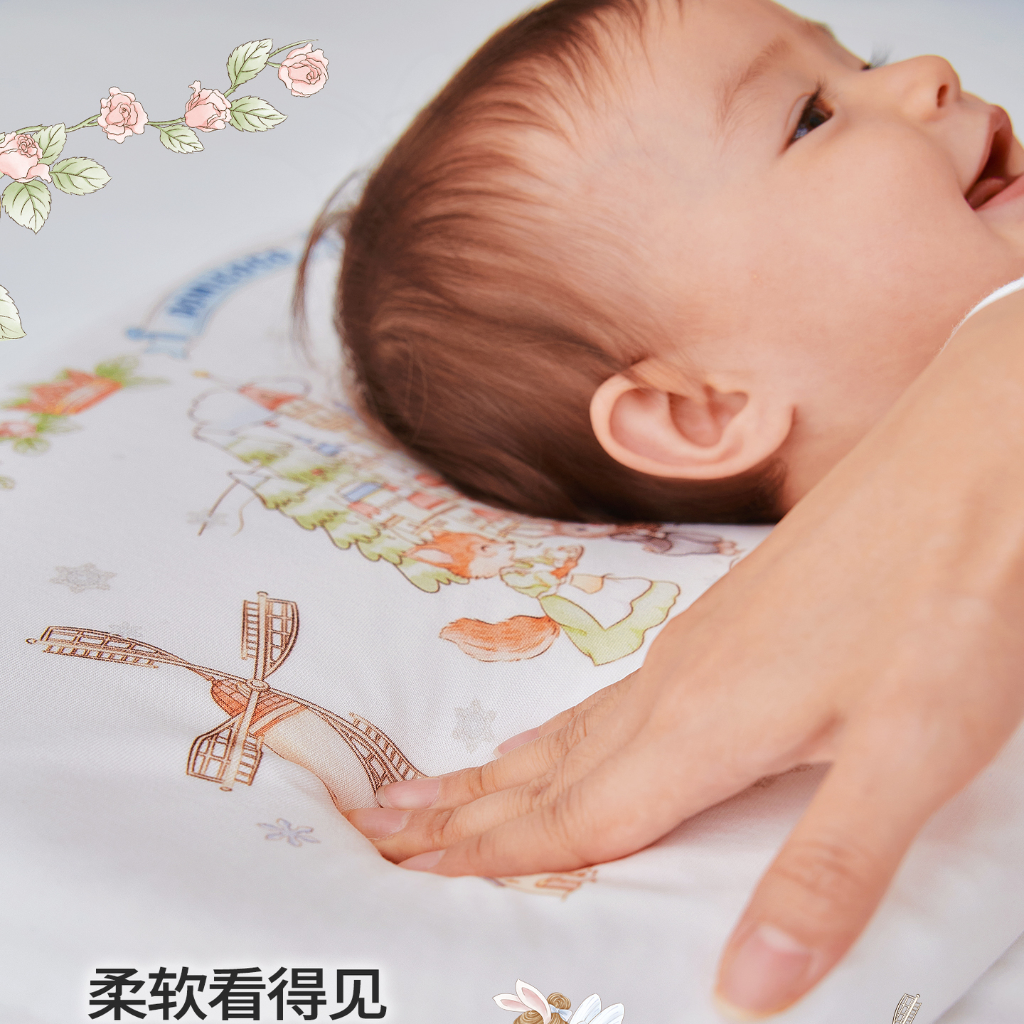 【商场同款】英氏婴儿定型枕大豆棉儿童四季3A抗菌新生儿宝宝枕头