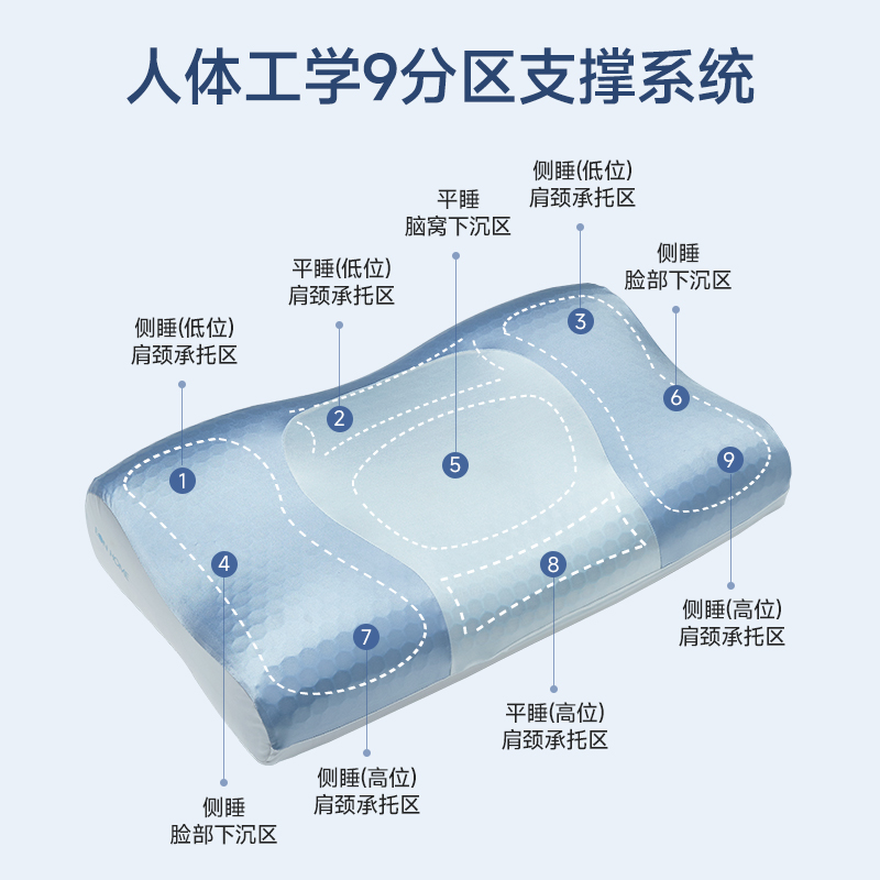 天猫宜奥『美眠』9分区记忆棉枕头护颈枕女男士成人抑菌防螨家用枕芯