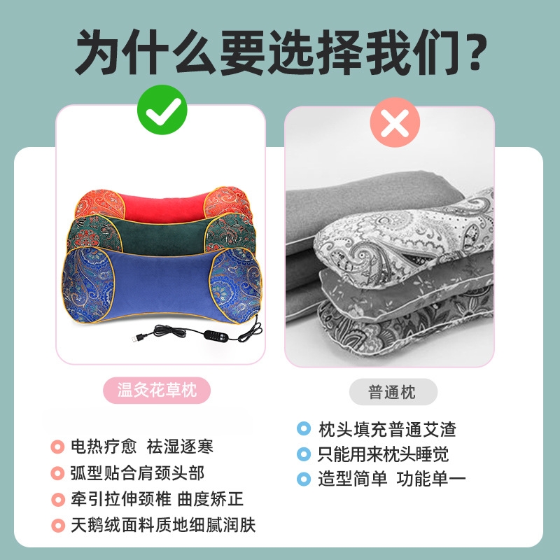 淘宝艾草热敷颈椎枕艾灸热敷艾灸专用枕头电加热秋冬款纯艾草艾叶枕头